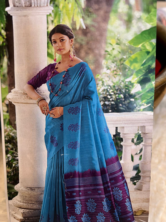 Ready To ShipBlue Kumbh Kirti Semi Tussar Silk Saree