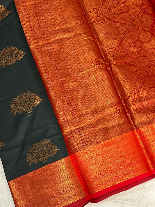 Ready To ShipDark Green and Yellow Kubera Soft Silk Saree