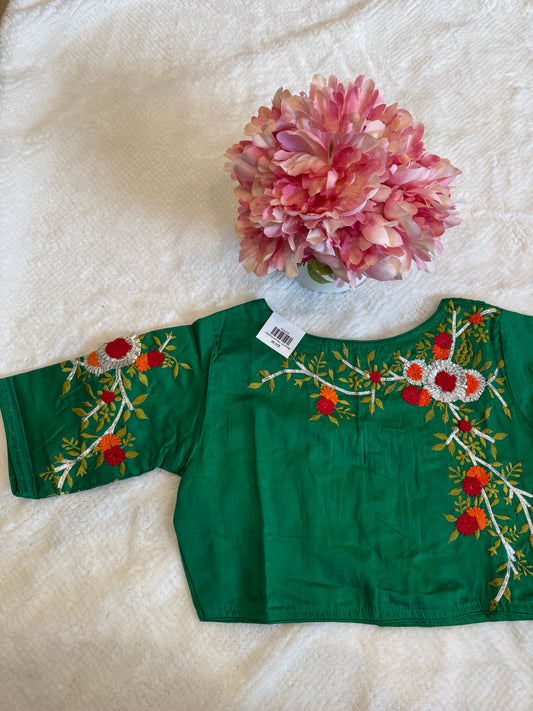 Ready To ShipGreen and Yellow Mirror Work Blouse D1