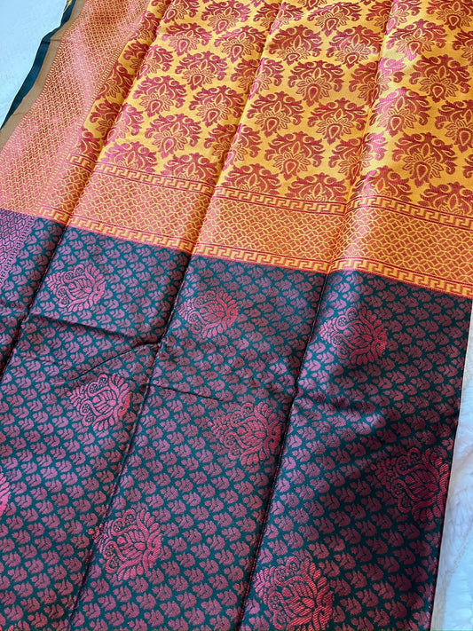 Ready To ShipGreen and Yellow Copper Queen Fancy Saree