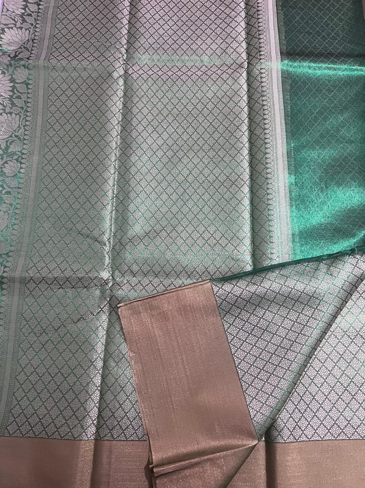 Green Nita Ambani Inspired Tissue Semi Silk Saree
