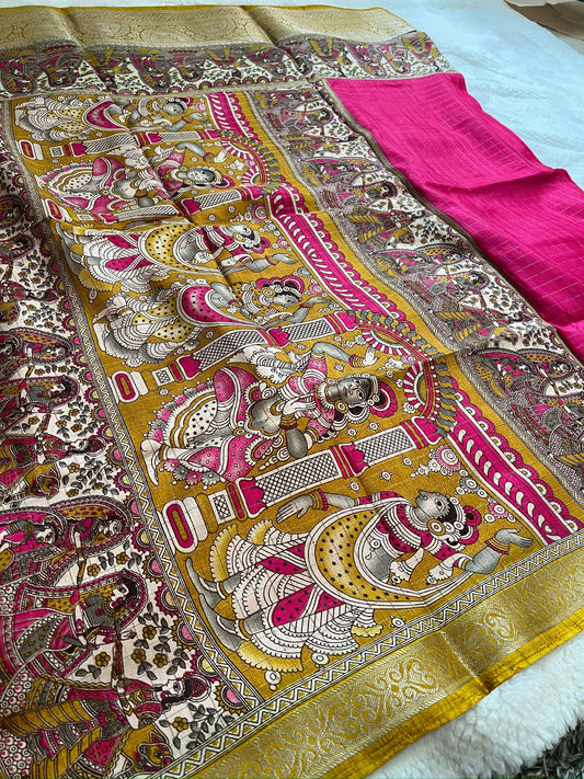 Hot Pink and Pale Green Uppada Kotanji Border Silk Cotton Saree