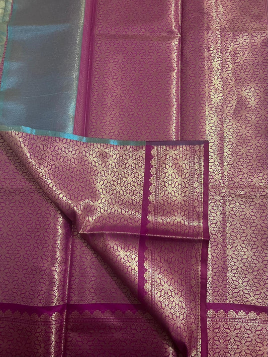 Light Blue Katan Tissue Semi Silk Saree