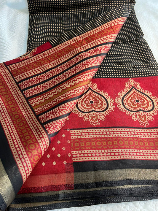 Sold outBlack and Red Kaju Silk Cotton Saree