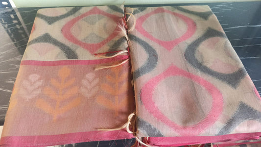 Peach and Reddish Pink Cotton Banarasi Pochampally Saree