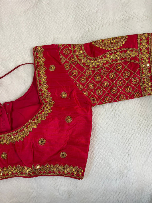 Ready To ShipPink Leaf Design Copper Zari Blouse