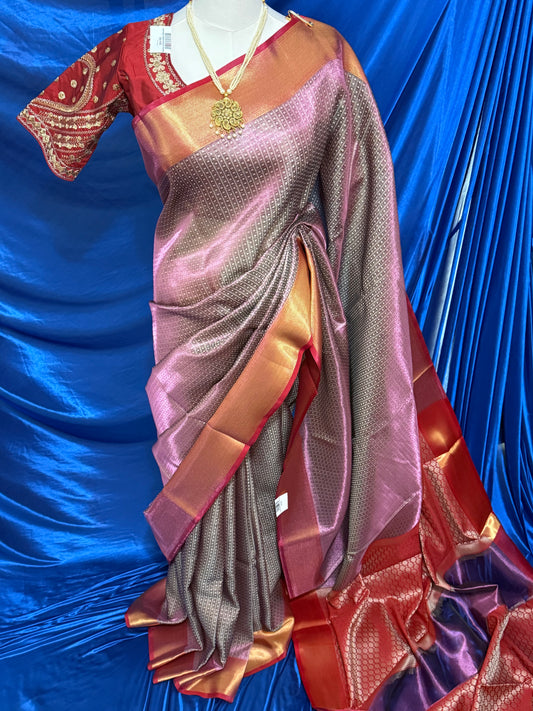 Sold outPink with Red Border Tissue Saree