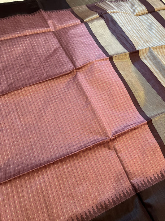 Ready To ShipPink Temple Desgin Tissue Saree
