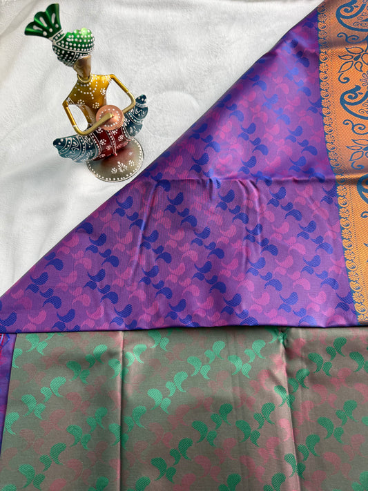 Purple and Green Kanchivaram Jacquard Border Soft Silk Saree