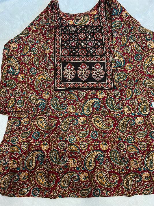 Ready To ShipRed Diamond Pattern V Neck 2-Piece Chudidar Set