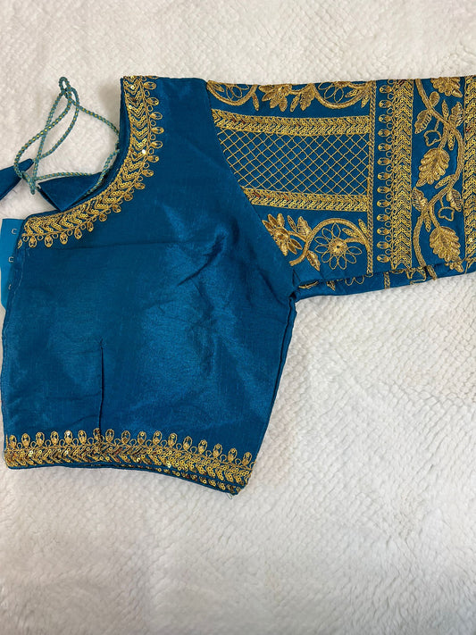 Ready To ShipBlue and Yellow Hand Painted Blouse D1
