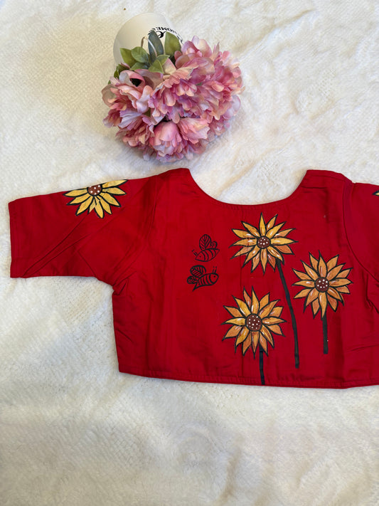 Ready To ShipRed and Yellow Hand Painted Blouse D1
