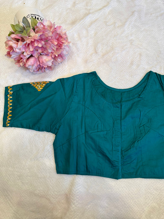Ready To ShipTurquoise with Yellow Mirror Work Blouse D1