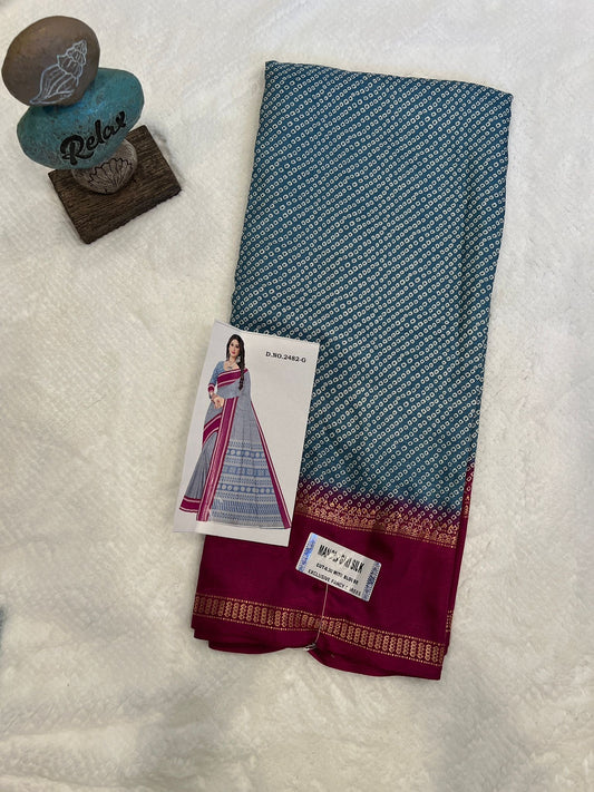 Ready To ShipBlue and Magenta Mangalagiri Semi Silk Saree
