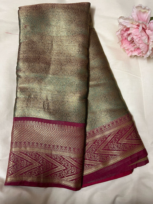 Ready To ShipGreen Kanchipuram Semi Silk Saree