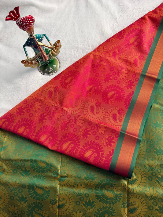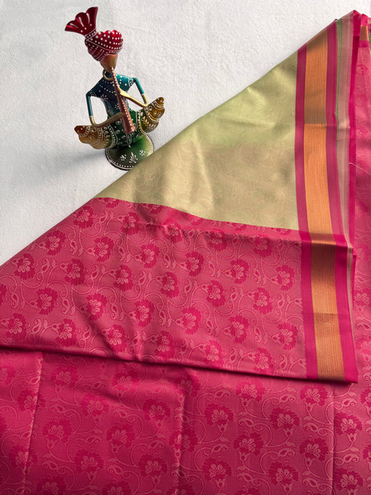 Ready To ShipApsara Hot Pink and Green Semi Silk Saree