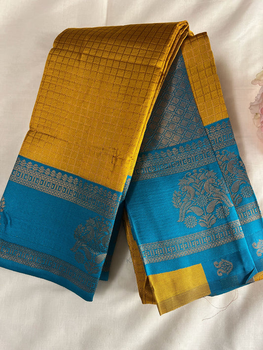 Ready To ShipRoyal Blue and Yellow Fancy Soft Silk Saree