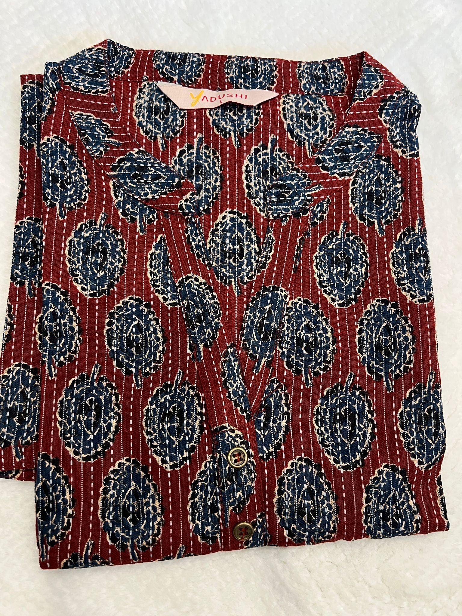 This sleeveless short kurti offers a lightweight and breathable option for casual wear. Its versatile design pairs effortlessly with jeans or skirts, making it ideal for everyday comfort and style. Perfect for warm weather, it combines ease of movement with a chic, minimalist look.