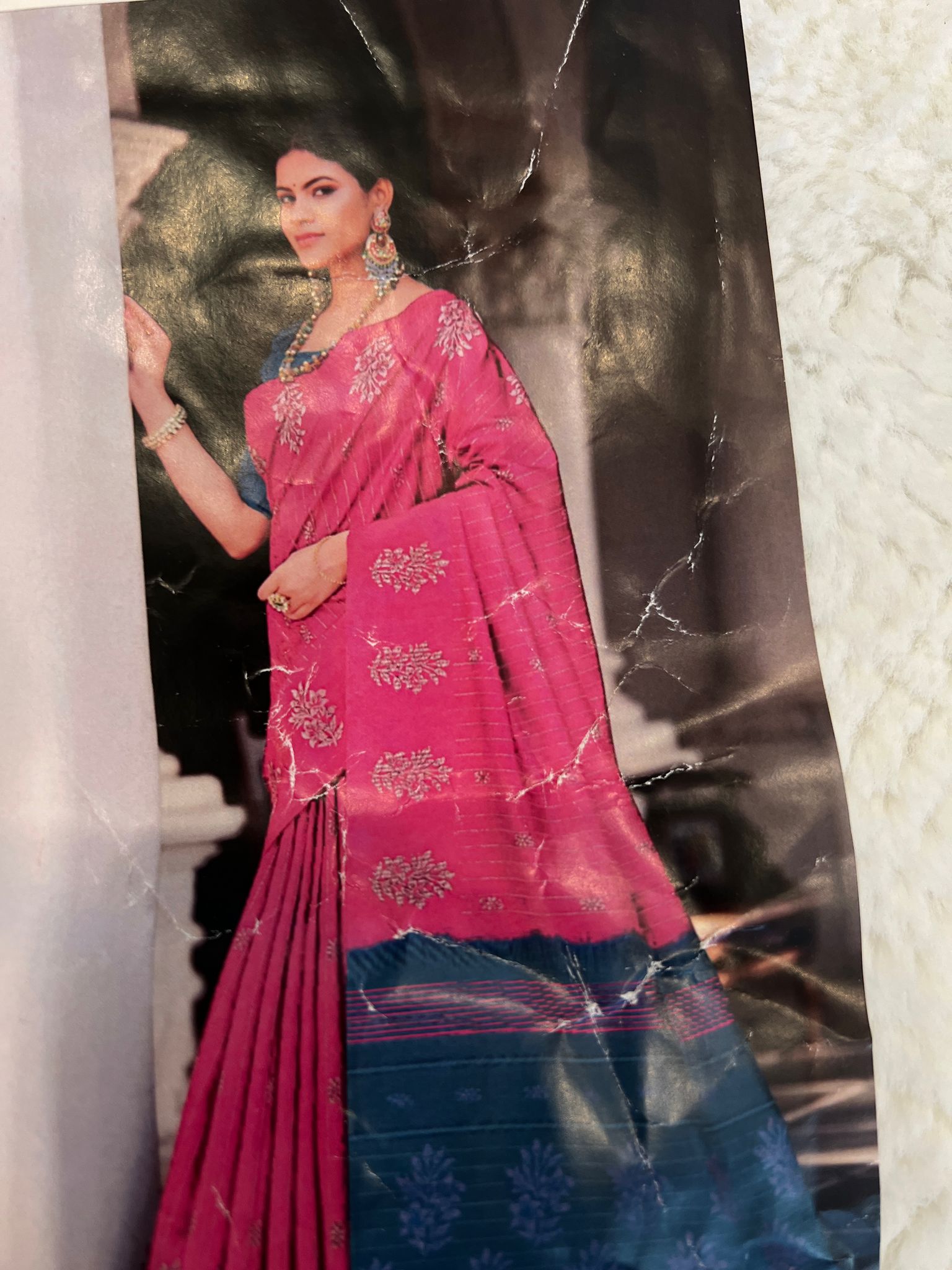 Hot Pink Handloom Padding Linen Saree