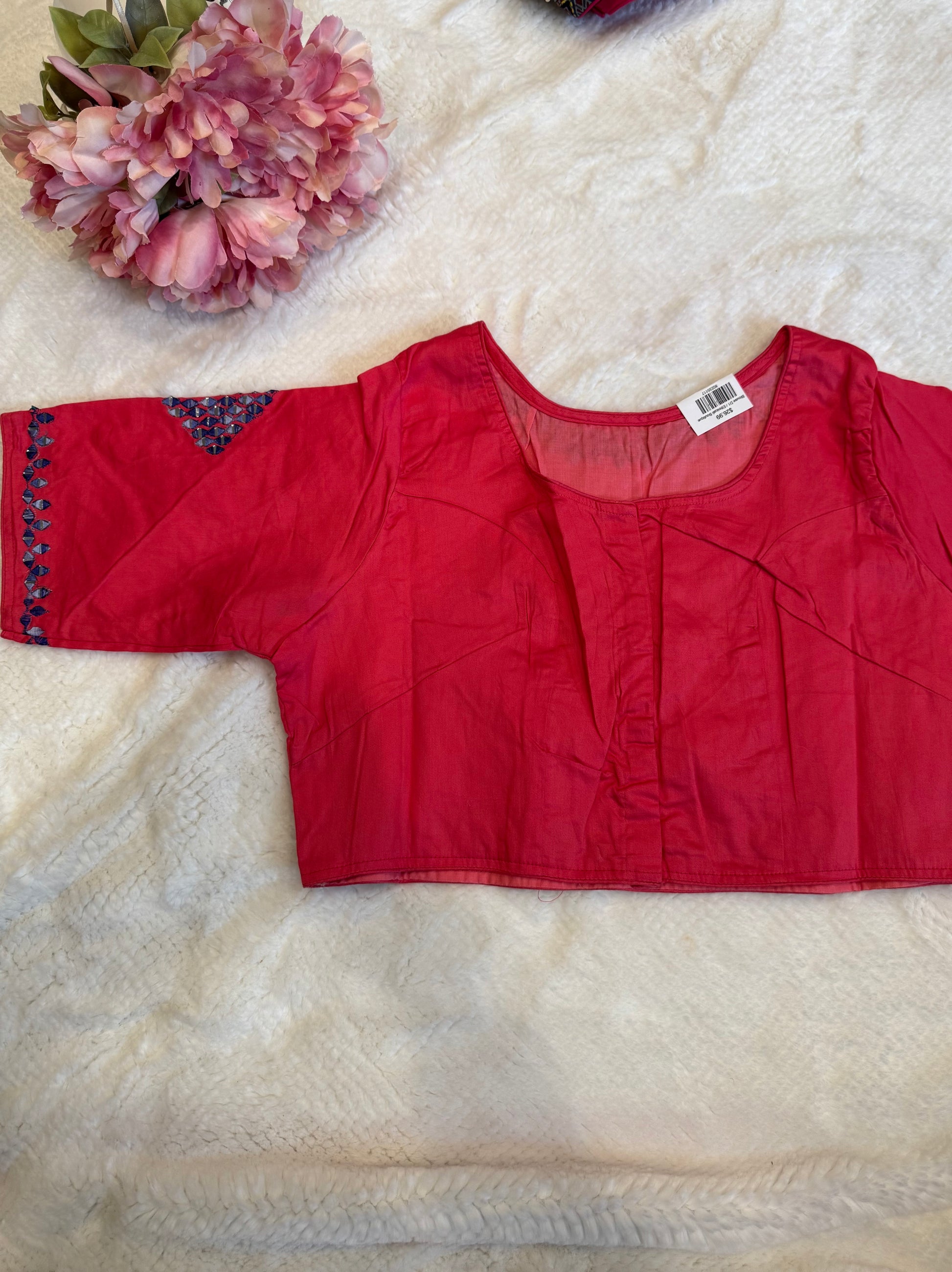 Hot Pink and Navy Blue Mirror Work Blouse D1