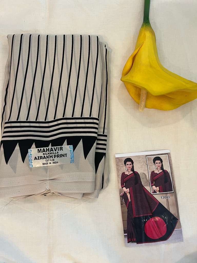 This Mahavir Fancy Saree features exquisite Ajrakh print on a super soft blend of synthetic and georgette fabrics. Its lightweight texture ensures effortless draping and comfortable wear, making it an ideal choice for both festive occasions and formal events. The saree’s elegant finish highlights traditional craftsmanship while offering modern ease and sophistication.
