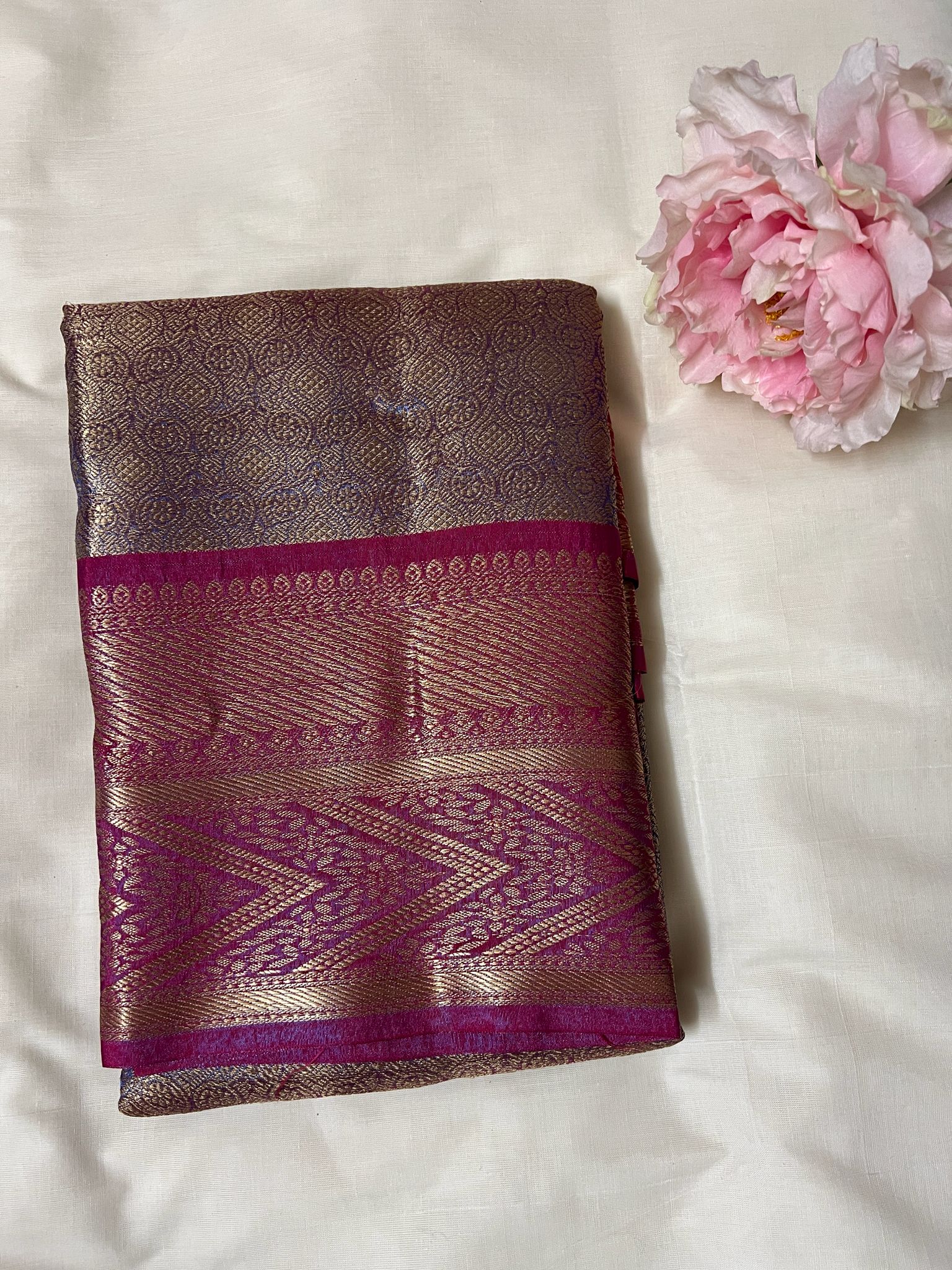 Elevate your festive wardrobe with the Kanchipuram Semi Silk Saree Collection. Crafted from smooth semi silk, this saree features the look and feel of original kanchipuram silk sarees. Its lightweight fabric ensures easy draping, allowing you to enjoy both style and comfort effortlessly during celebrations or special occasions.